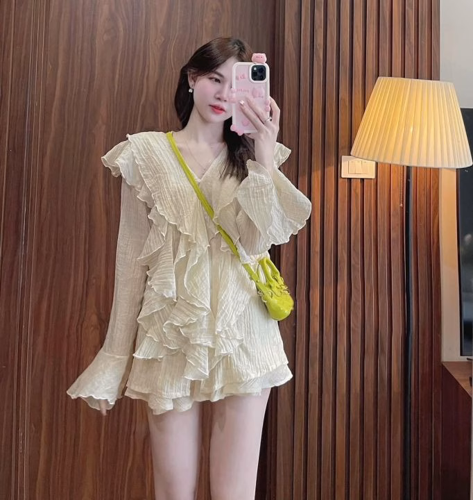 Với áo ren lưới mỏng chiffon dài tay tiểu thư viền bèo nhún, chị em có thể tạo nên một phong cách vừa quyến rũ vừa sang trọng. Sản phẩm này có thể được kết hợp với chân váy, quần jeans hay thậm chí là áo khoác ngoài.