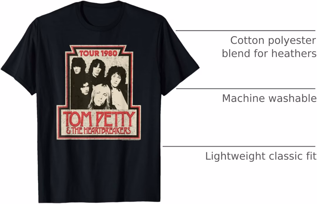 Hiện tại, Áo thun áp phích Tour diễn Tom Petty And The Heartbreakers 1980 đang được bán với giá 144720 VND (giảm 21% từ 186689 VND). Quý khách hàng có thể mua sản phẩm tại địa chỉ này. Sở hữu chiếc áo này, người hâm mộ không chỉ thể hiện phong cách mà còn lưu giữ một phần lịch sử âm nhạc rock.
