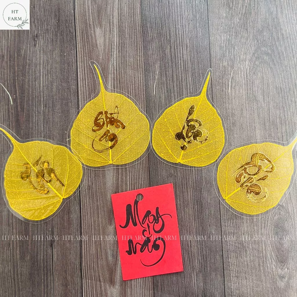 Lá bồ đề thường được trang trí với những chữ hoặc họa tiết mang ý nghĩa tốt lành như “Phúc”, “Lộc”, “Tài”, “Bình An”. Những ký tự này không chỉ tăng thêm giá trị thẩm mỹ cho vật phẩm mà còn tăng cường hiệu quả phong thủy.