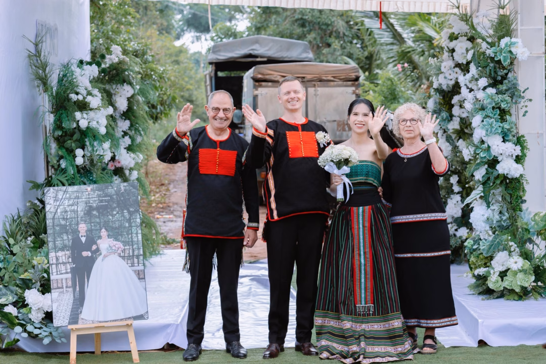 Đám cưới của cặp đôi này là sự kết hợp độc đáo giữa nghi lễ cưới hỏi phương Tây và truyền thống Việt Nam, khiến khách mời và người thân cảm thấy thích thú. Cả hai bên gia đình đều diện trang phục truyền thống của người Ê Đê và thực hiện những nghi lễ truyền thống. Chú rể và gia đình đã bất ngờ về văn hóa và phong tục cưới hỏi theo chế độ mẫu hệ bên phía Việt Nam.
