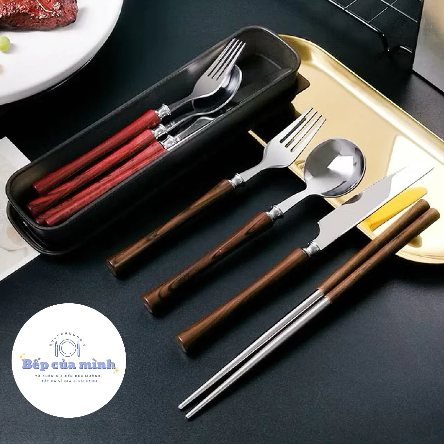 🔥 Bộ Muỗng Đũa Nĩa Inox 3 Trong 1 – Cán Nhựa Giả Gỗ, Có Hộp Đựng – Tiện Lợi Đi Làm, Picnic đang giảm giá!