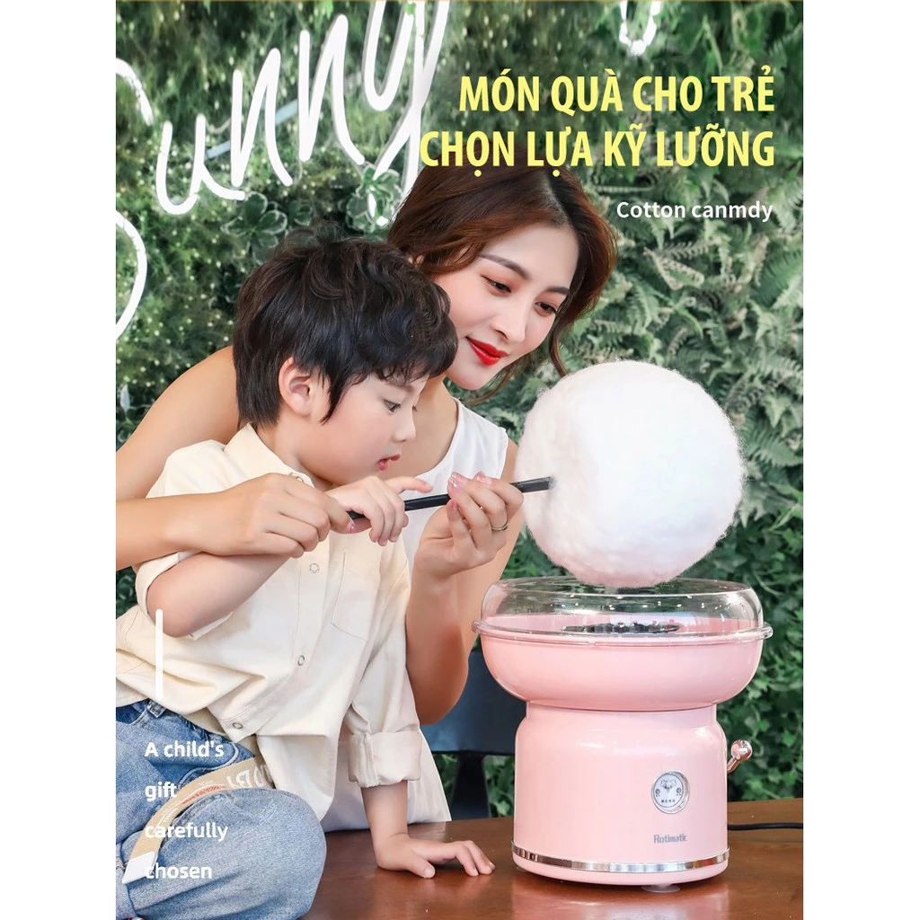 Chiếc máy này có thiết kế màu sắc tươi sáng, kiểu dáng đáng yêu, giúp bé rất hứng thú khi sử dụng. Sản phẩm cũng được thiết kế với các tính năng an toàn như tự động tắt khi không sử dụng, giúp phụ huynh yên tâm khi cho bé tự làm kẹo bông gòn tại nhà.