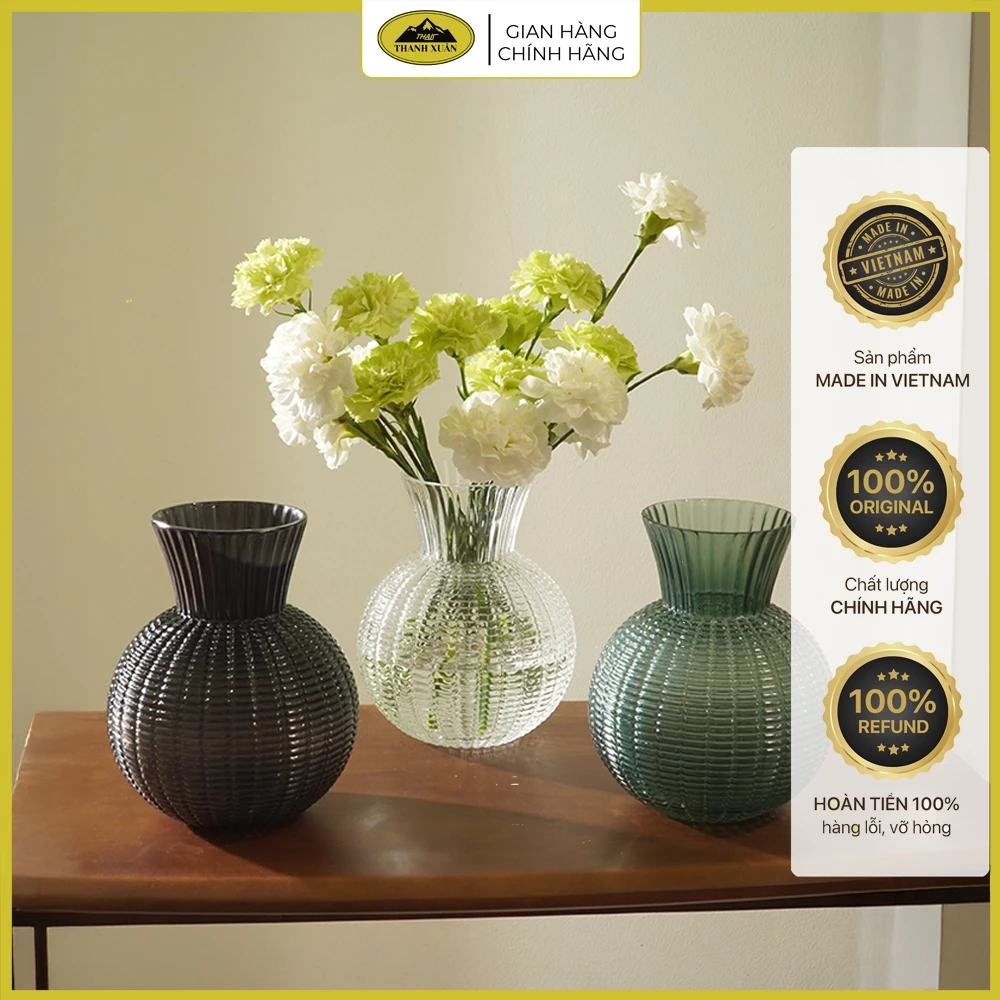 Bình hoa Bình hoa thủy tinh dáng quả hồng, vân kính cao cấp, lọ hoa thủy tinh, bình bông thủy tinh Thanh Xuân TXG cắm hoa, decor là một ví dụ điển hình cho một sản phẩm chất lượng. Với thiết kế độc đáo và chất liệu cao cấp, sản phẩm này không chỉ đáp ứng nhu cầu trang trí mà còn đảm bảo độ bền lâu dài.