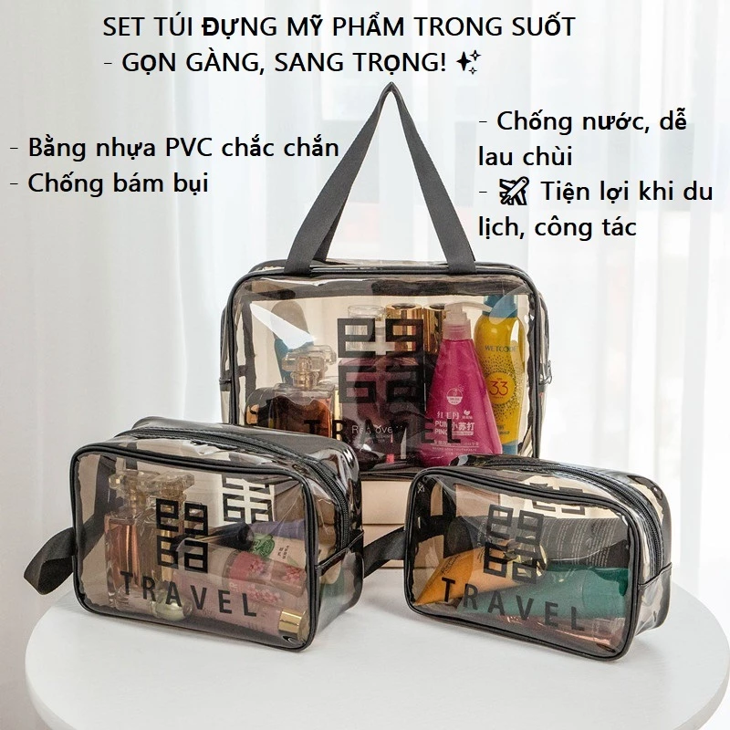 🔥 Bộ túi đựng mỹ phẩm trong suốt, chống nước, nhựa PVC bền đẹp, tiện lợi khi du lịch, dễ dàng sắp xếp đồ dùng cá nhân đang giảm giá!