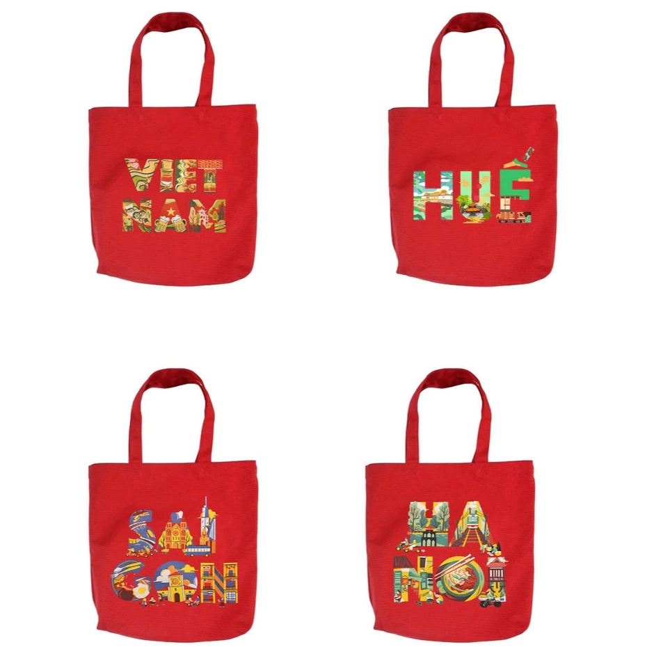 🔥 Túi tote, Túi vải bố canvas cotton màu đỏ Việt Nam Hà Nội Sài Gòn Huế đeo vai thời trang đựng vừa A4 – tuid011 đang giảm giá!