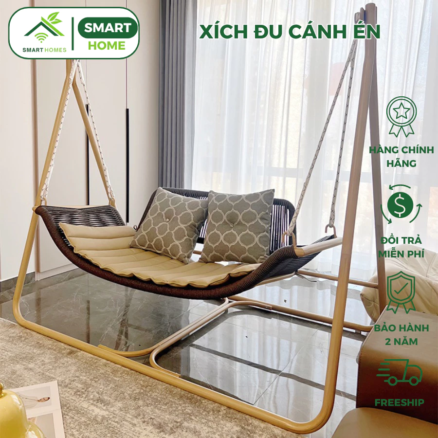 🔥 Xích đu cánh én SMARTHOMES decor phòng khách ban công sân vườn quán cafe chất liệu giả mây đang giảm giá!