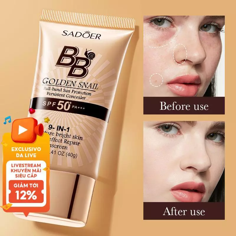 🔥 Kem nền BB SADOER Gold Snail chống nắng, che khuyết điểm, dưỡng ẩm, kem cách ly SPF50+PA+++ 40g đang giảm giá!