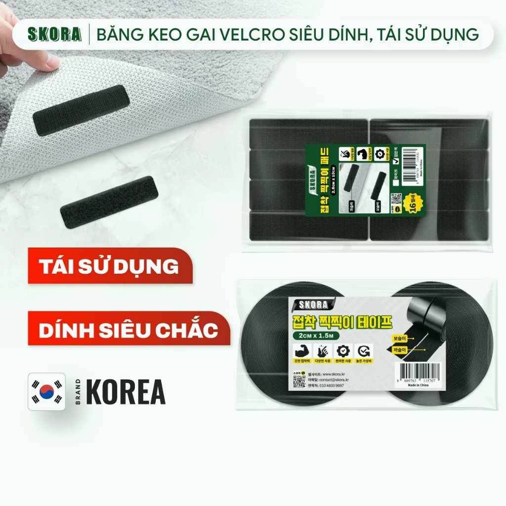 🔥 Băng dính gai Skora có sẵn keo siêu dính Velcro đen siêu chắc, tái sử dụng nhiều lần, tiện lợi, dính cực mạnh đang giảm giá!