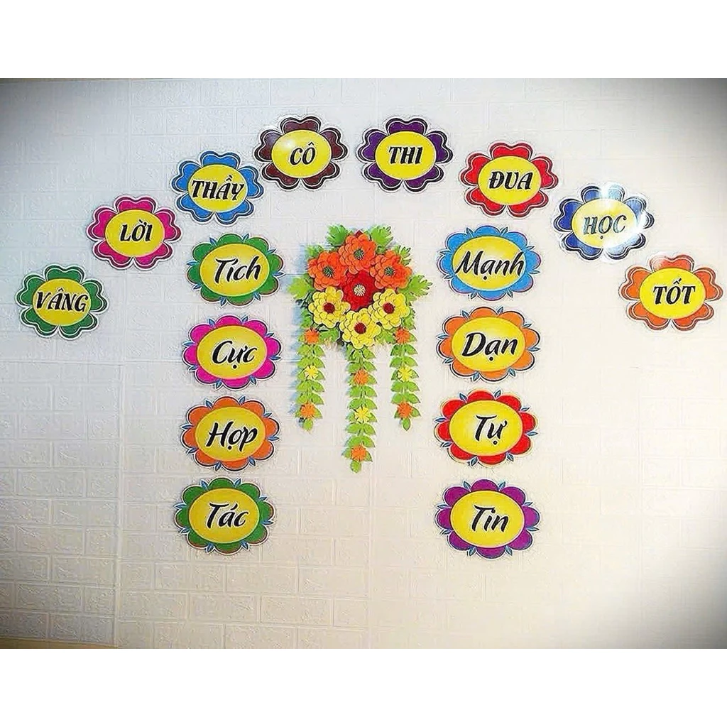 🔥 Khẩu hiệu ( Vâng lời thầy cô thi đua học tốt) hình tim, ép plastic, sẵn băng keo dính tường ko bao gồm hoa đang giảm giá!
