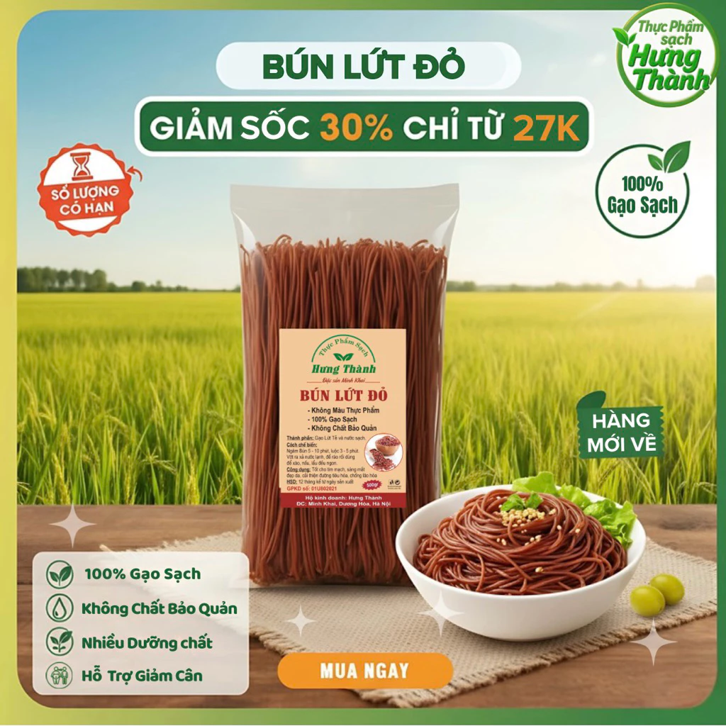 Sản phẩm có chất lượng cao, với thành phần chính là gạo lứt nguyên chất, không chứa thêm bất kỳ chất phụ gia hay chất bảo quản nào. Bún có hương thơm nhẹ và dai, giúp tăng thêm phần ngon miệng cho bữa ăn.