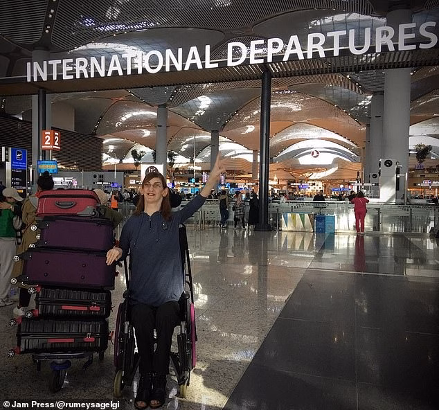 Nhờ sự hỗ trợ của Turkish Airlines, Rumeysa đã thực hiện chuyến bay quốc tế đầu tiên từ Thổ Nhĩ Kỳ đến Mỹ vào tháng 9 năm 2022. Hãng hàng không đã tháo bỏ 6 ghế để lắp đặt cáng chuyên dụng, giúp cô có “chuyến bay hoàn hảo”.