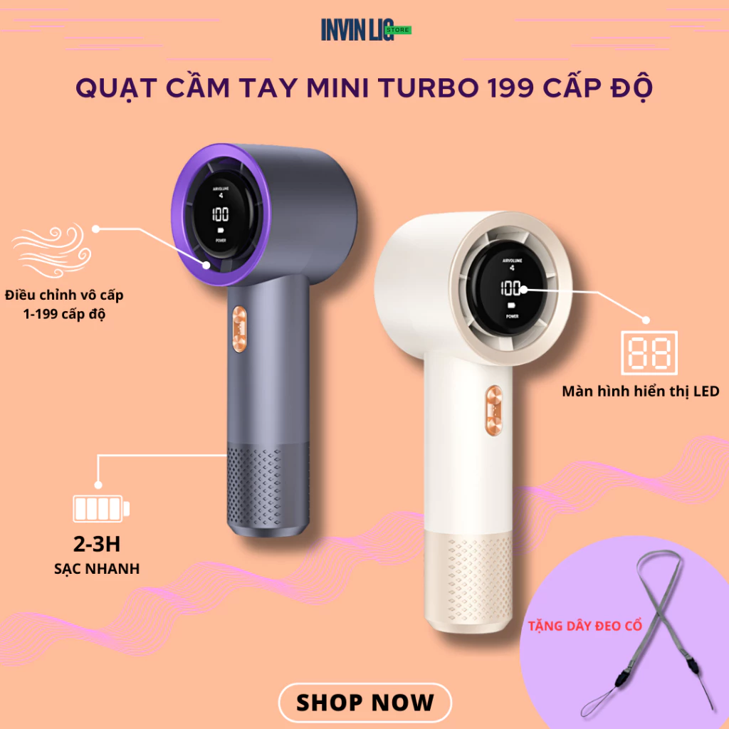 🔥 Quạt Mini Cầm Tay Turbo 199 Cấp Độ Gió Làm Mát Nhanh Dung Lượng Pin 3000mah Màn Hình Led Hiển Thị- INVIN LIG STORE đang giảm giá!