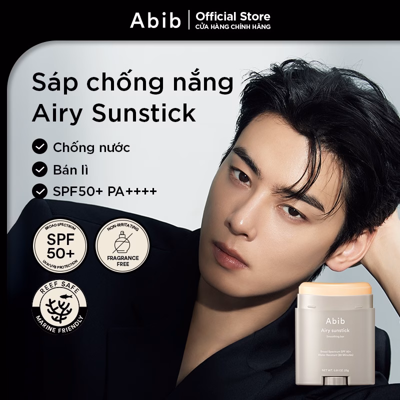 Một trong những sản phẩm được ưa chuộng hiện nay là [Abib x Cha Eun-woo] Sáp chống nắng chống nước, finish bán lì Abib Airy Sunstick Smoothing Bar SPF50+ PA++++ 23g. Sản phẩm này không chỉ cung cấp khả năng bảo vệ cao với chỉ số SPF50+ và PA++++ mà còn có công thức nhẹ thoáng, không gây nhờn bóng và thích hợp cho mọi loại da.