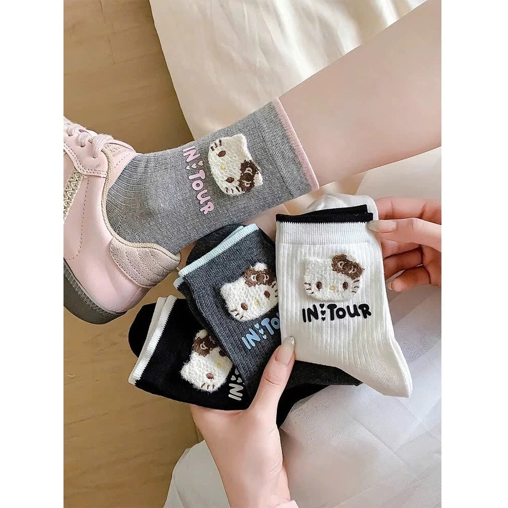🔥 Tất nữ hoạt hình mèo nổi 3D dễ thương IN TOUR, chất cotton cao cấp co giãn tốt, không bai xù, phong cách ulzzang đang giảm giá!
