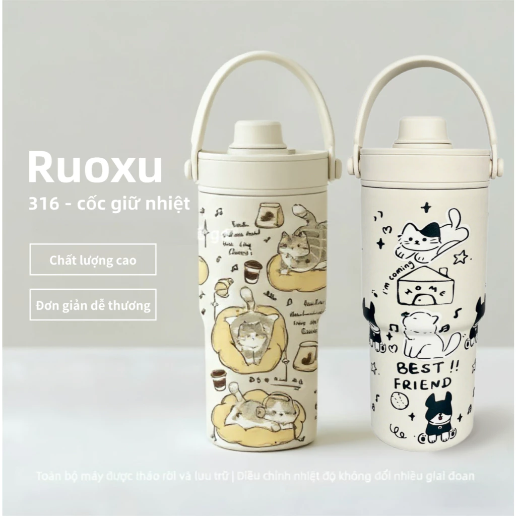 🔥 Ly giữ nhiệt Simply cao cấp Inox 316 Phủ Sứ, cốc giữ nhiệt RUOXU 735ml ống hút thủy tinh đang giảm giá!